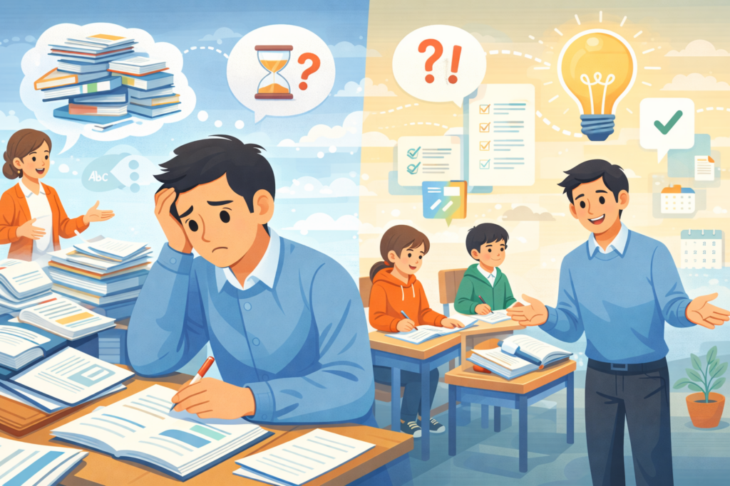 この記事では、教科書を1ページ目から最後まで教え切るという思い込みをいったん脇に置き、指導要領が本当に求めている授業の姿を整理します。